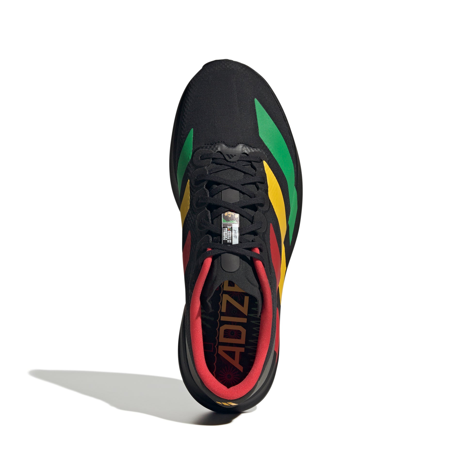 The Bob Marley x adidas Adizero Evo SL combines lightweight running performance with Marley‑inspired Rasta accents on a sleek black mesh upper. Designed for everyday training, it delivers breathable comfort, smooth transitions, and iconic cultural detailing.
