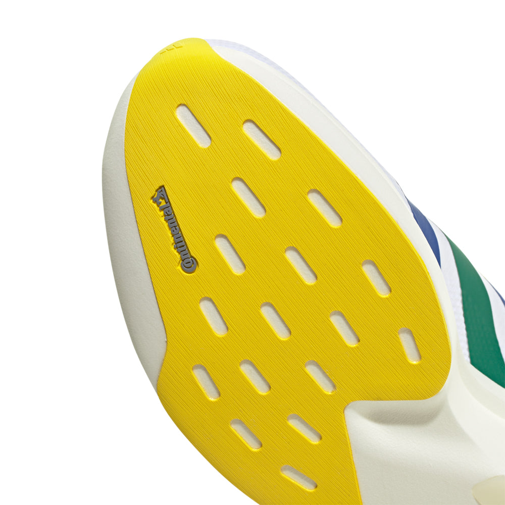 The adidas Adizero Evo SL Woven is built for runners who want lightweight speed with upgraded comfort. Featuring a woven textile upper for improved breathability and lockdown, the shoe pairs a full-length Lightstrike Pro midsole with a grippy rubber outsole, delivering responsive cushioning and steady traction on the road. Designed with race‑inspired DNA and everyday versatility, it blends bold color with high-performance engineering for confident miles.