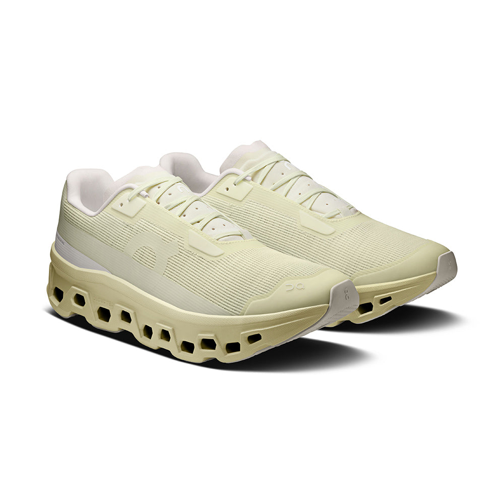 The On Cloudmonster Void in Seedling/Linen brings the signature Cloudmonster cushioning into a fresh, technical aesthetic. Built with a lightweight haptic‑mesh upper, enhanced stability from the Speedboard®, and rubber outsole pads for confident traction, it delivers breathable, everyday comfort. Finished with TPU eyelets, a perforated microfiber tongue, and subtle faux‑suede accents for a clean, minimalist look.