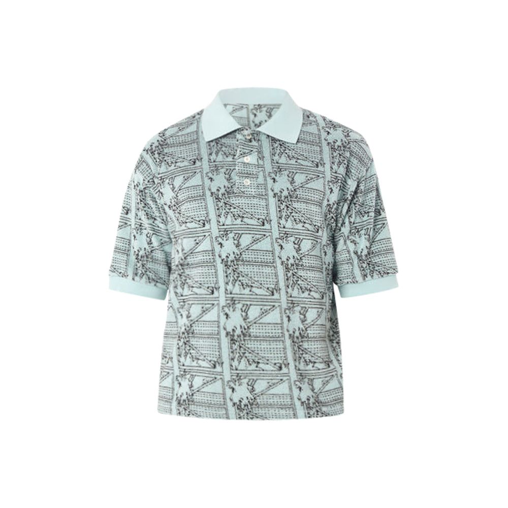 - Short Sleeve Light Blue Polo. Jacquard Repeat Logo Design