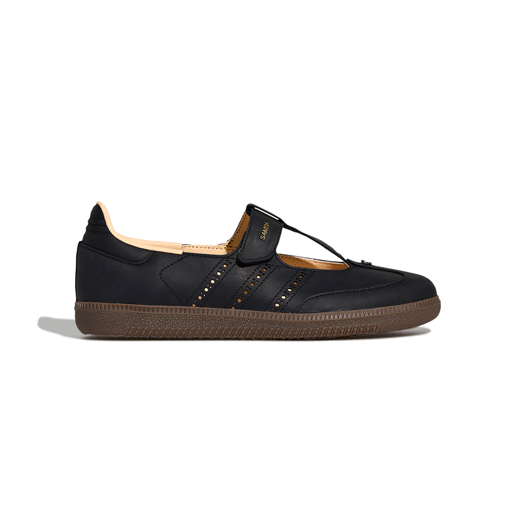The Women’s Samba Jane brings a modern Mary Jane twist to the iconic Samba silhouette. Designed with a smooth upper, signature 3‑Stripes, and a classic gum outsole, the shoe blends sporty heritage with feminine style. Its strap design adds an elevated touch while keeping the fit secure and comfortable for everyday wear.